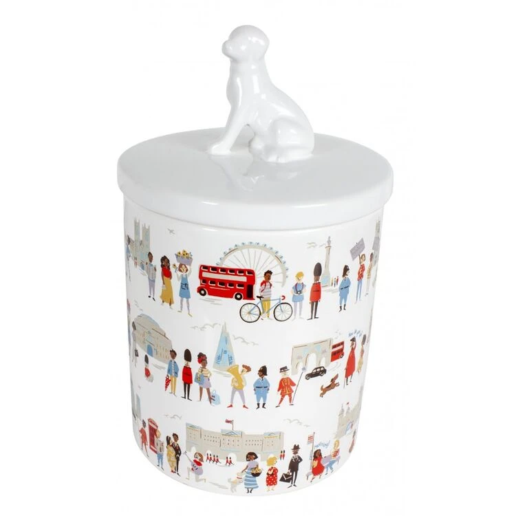 The perfect complement to the range, our ceramic treat jar feature a fun print to add a charm to any kitchen. The dog-shaped lid detail adds a novelty twist to a classic design that is perfect for storing all of your pet’s favourite treats. Dishwasher safe.