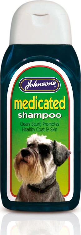 Johnson’s Medicated Shampoo effectively clears scurf, promoting a healthy coat and skin.