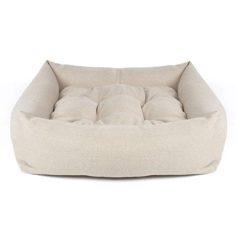 Lords & Labradors Luxury Tweed Dog Box Bed Natural Herringbone