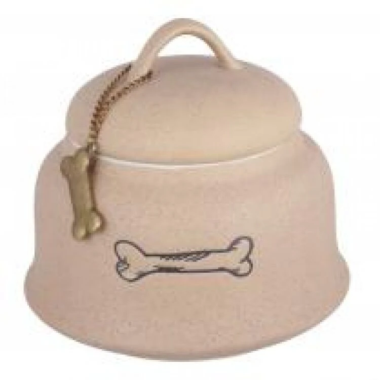 Complete with attached polished bone and fish charm, our sandstone effect dog and cat treat jar is the perfect place to store your pets favourite treats, keeping them fresh and delicious.