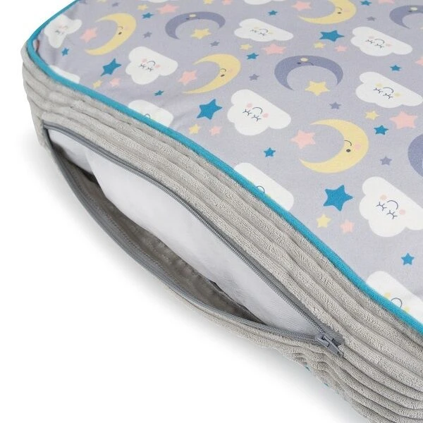 - Grey corded material with red piping and Little Sleepy Head logo – cover is machine washable at 30 degrees