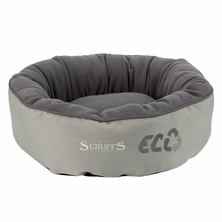 The Scruffs® Eco ring bed has an urban colour canvas sidewall with a contrasting charcoal super-soft fleece being used over the sleeping area; both of which are 100% recycled.